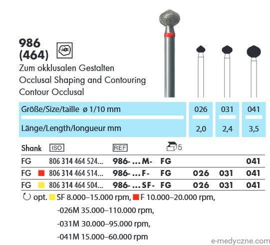 Wiertła diamentowe LazyBur 986 o średnicach 026, 031 na turbinę. Wiertła do ergonomicznego opracowania ubytków.