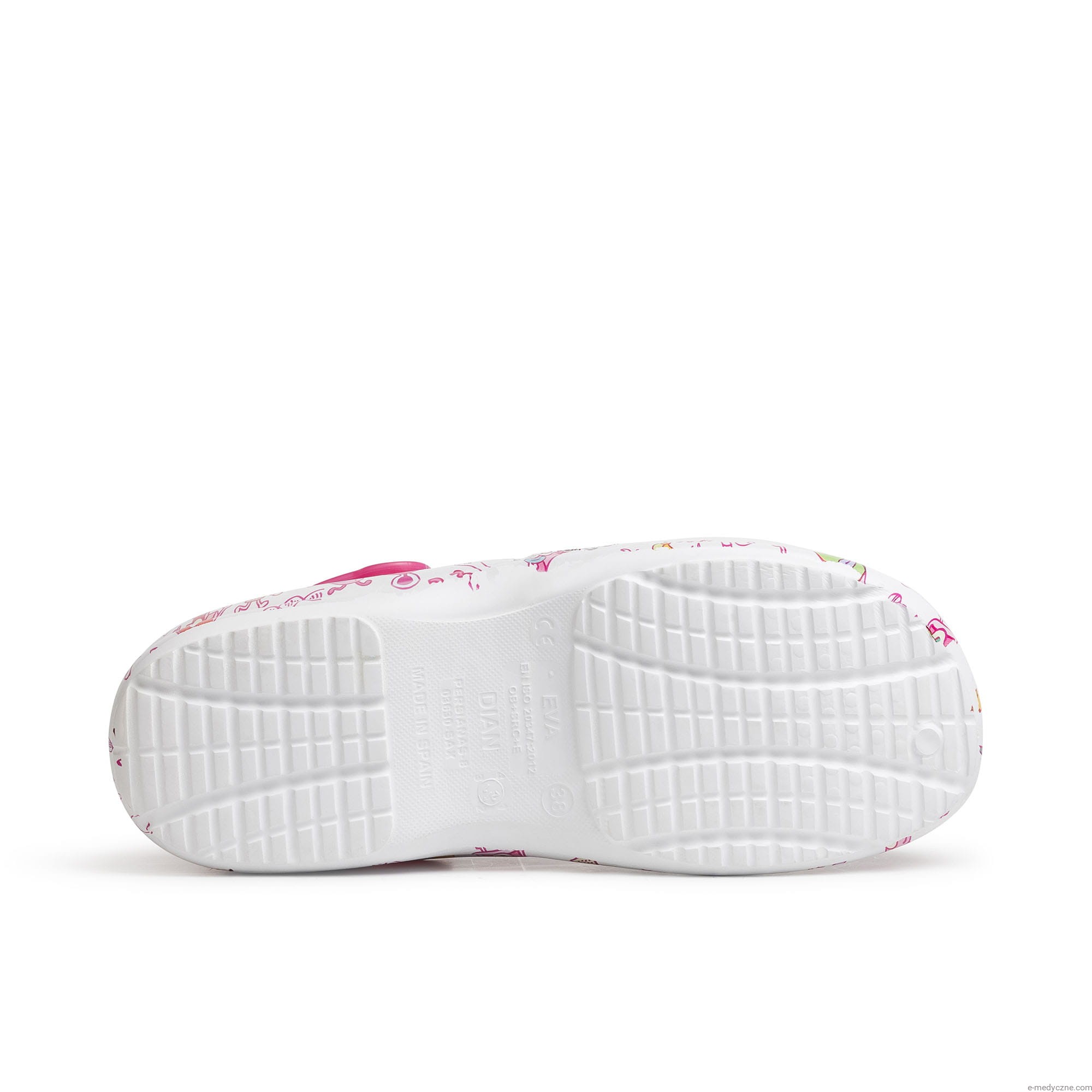 Obuwie medyczne, profesjonalne i ochronne, hiszpańskie - najnowszy model EVA Enjoy z kolorowym wesołym nadrukiem.