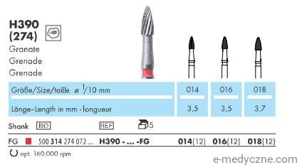 Finiry z węglika spiekanego  H390 014-016 FG na turbinę w kształcie jajka z bezpieczna końcówką.