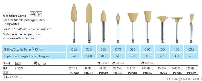 GUMKI NTI MicroComp na kątnicę w różnych kształtach żółte polerują wszystkie mikrofilne kompozyty.