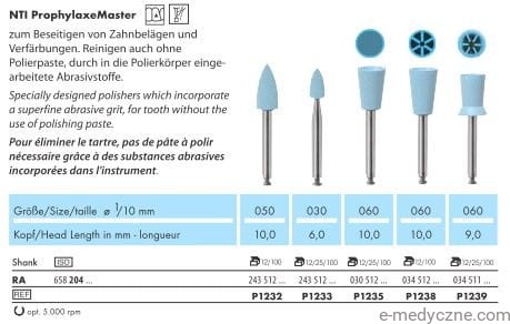 Gumki polerskie P1232-P1235 ProphylaxeMaster niebieskie NTI na kątnicę do kompozytów