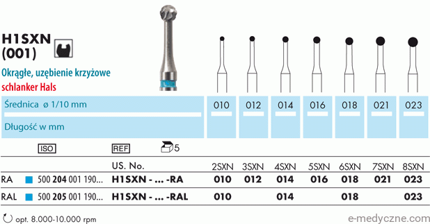 Doskonałej jakości wiertła różyczki na przedłużoną kątnicę RAL z przewężoną szyjką w średnicach od 010 do 023 z dodatkowym poprzecznym nacięciem.