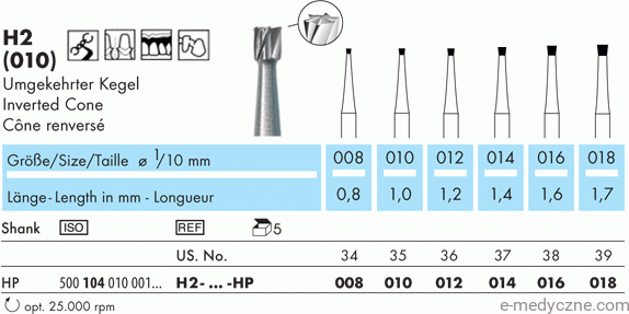 Wiertła H2 008 - 016 HP z węglików spiekanych- stożki odwrócone na prostnicę