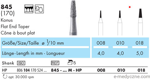 Wiertła - stożki małe 845 - 010 - 018 na prostnicę HP - 5 sztuk