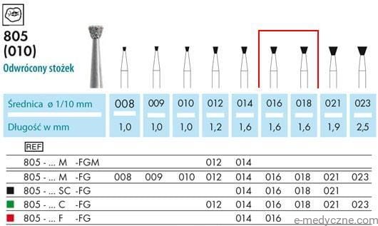 Najwyższej jakości wiertła diamentowe - stożki odwrócone 805 008-014 na turbinę produkcji niemieckiej firmy NTI-Kahla GmbH. W cenie tutaj podanej w średnicach 008-014. W uziarnieniu średnim, zgrubnym, drobnym i wstępnie zgrubnym.