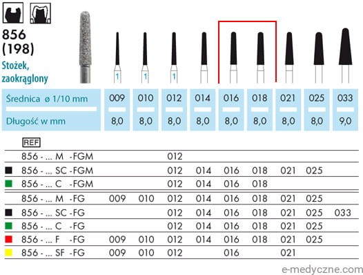 Wiertła - stożki zaokrąglone 856 016-018 FG