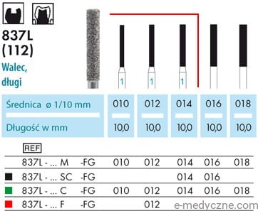 W cenie tutaj podanej w średnicach 010-014. W uziarnieniu zgrubnym C (zielony pasek), średnim M oraz drobnym F.
